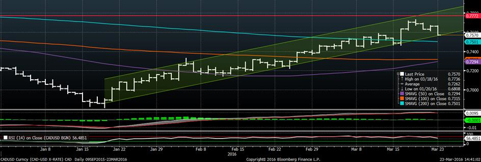 Graphique 5 - Taux CAD/USD en 2016