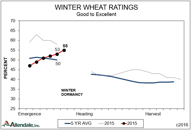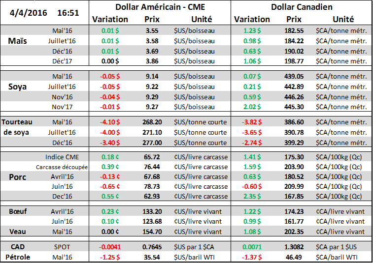 Le rapport sur la progression des semis (Crop Progress) sera remis à demain. Le rapport était plus significatif pour le blé alors que nous sommes intéressé à revoir les conditions good/excellent à la sortie de l’hiver. L’USDA ne publiera probablement pas de stats pour le maïs, les début étant trop hâtif encore. À l’automne les dernier chiffres pour le blé étaient 11% excellent, 44% good, 36% fair, 7% poor et 2% very poor. On parle souvent des ratings en terme good/excellent ; dans ce cas c’est 55% du blé qui est de bonne ou excellente qualité. Avec les semis en forte baisse cette année, les indices de qualité seront surveillés plus étroitement.