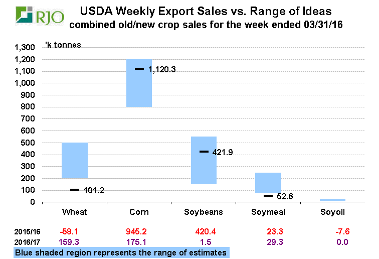Maïs : bonne semaine d’exportation avec 945k tonnes dans le haut de la fourchette des attentes. Le rythme des ventes depuis le mois de janvier a repris beaucoup de retard si bien que les américains rattrape l’écart qui s’était creusé. En janvier les exportation étaient en baisse de 26%, un énorme gap sur la cible USDA mais actuellement cet écart à rétréci à « seulement » 14%. En fait l’USDA s’attend déjà à une réduction de l’exportation de l’ordre de 11% alors pour l’instant vue la rattrapage rien ne porte à croire que le ministère va revoir la demande dans le bilan la semaine prochaine. L’USDA place les exportations à 1.650 milliard de boisseaux pour l’année de commercialisation en cours.