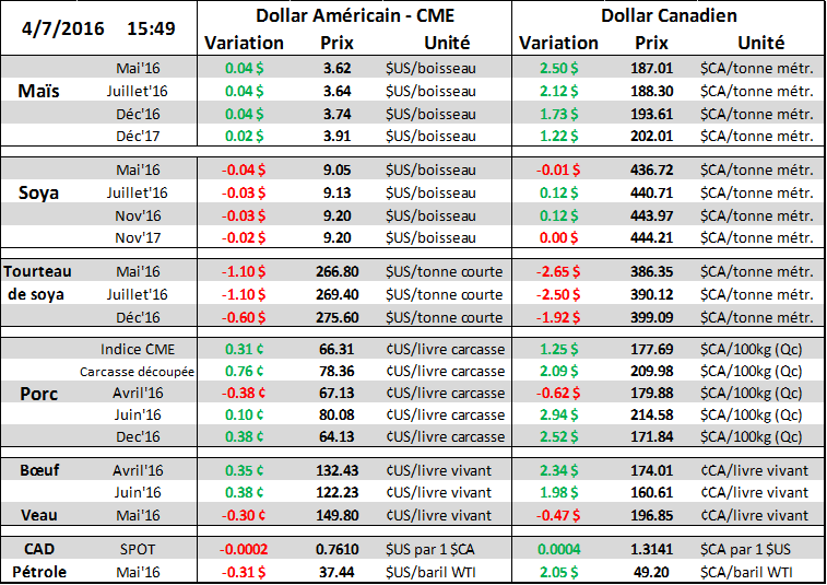Blé : Ouch. L’exportation de blé est vraiment en retard et une annulation de 58k tonnes comme cette semaine vient donner un sérieux coup de masse. Le blé me fait penser au Canadiens de Montréal quand ils se font scorer 3 buts en fin de troisième période…. Il nous apparait de plus en plus impossible d’atteindre la cible de 775 millions de tonnes d’ici la fin juin. À l’heure actuelle les vente à l’exportation sont en baisse de 17.4% alors que l’USDA maintient le cap à 9.3%. Clairement le marché s’attend à une révision dans les prochains rapport USDA, peut-être pas la semaine prochaine mais fort possiblement en mai si rien ne change. Au final on risque de diminuer la demande de 10-15 millions de boisseaux.