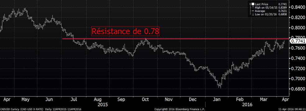 Ø Dollar canadien : si on brise la résistance de 0.78 $US par 1 $CA, considérer une protection entre 0.785 et 0.825 $CA. (voir graphique ci-dessous).