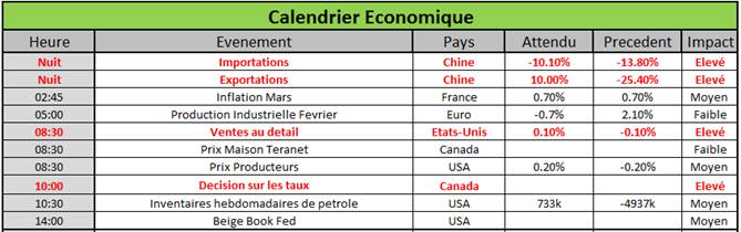 Aucun mouvement sur les taux n’est attendu mais nous nous intéresserons plutôt aux commentaires éventuels sur la hausse du CAD mais aussi sur la mise à jour de leurs prévisions économiques.