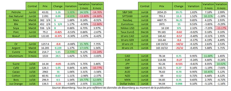 En tout cas, le pétrole a rebondit de plus de 4% et les contrats de juin ont brisés les sommets de mi-mars. De plus, le Brent a clôturé au-dessus de sa moyenne mobile 200 jours pour la première fois depuis 2014.