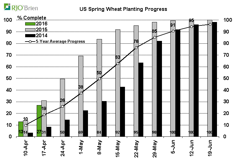 · 27% du blé de printemps est semé (en avance)
