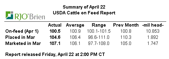 · Cattle-on-Feed : hausse de 0.5% des bœufs en parc d’engraissement (un peu plus que prévu)