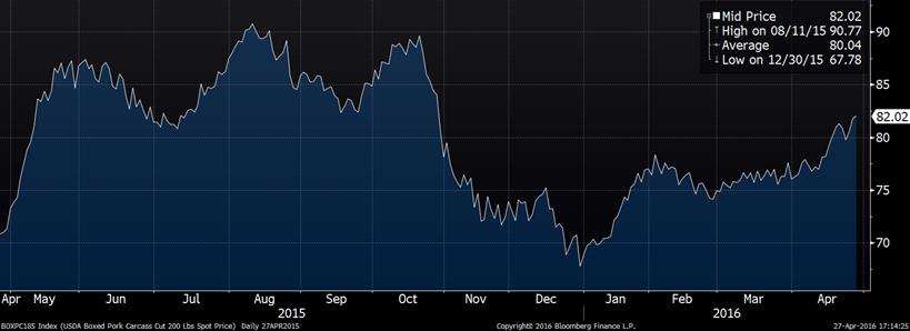 · Le prix de la carcasse découpé à 82.00¢/lb, nouveau haut depuis 6 mois