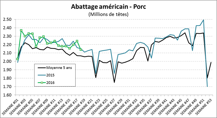 · Abattages de porc : retour au niveau de 2015 à 2.14 M têtes