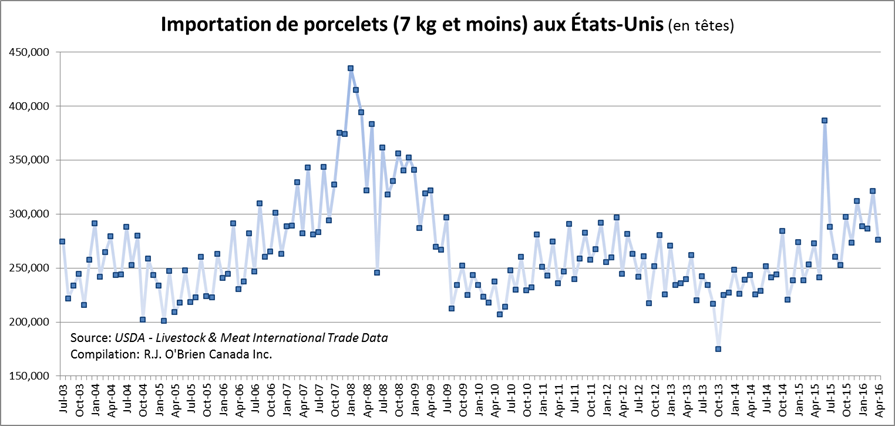 · Hausse annuelle de 17% des importations de porcelets des É.-U. du Canada