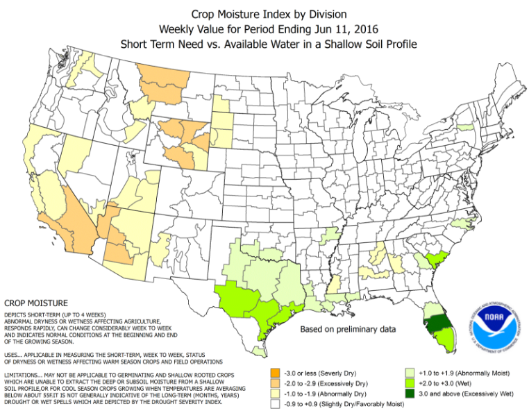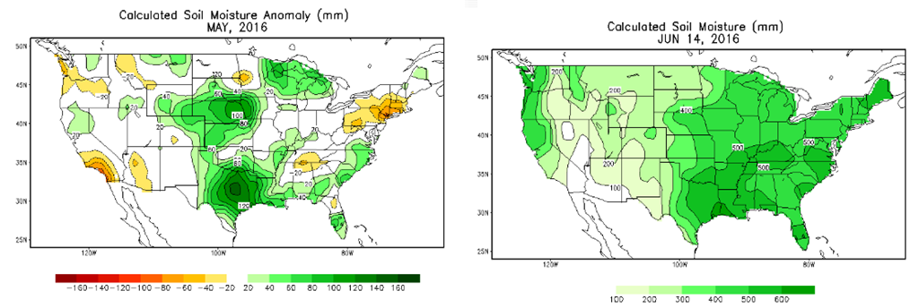 Humidité des sols : certains endroits ont reçu moins d’eau durant le mois de mai, mais dans l’ensemble les conditions sont bonnes la pluie s’en vient aux bonne places.
