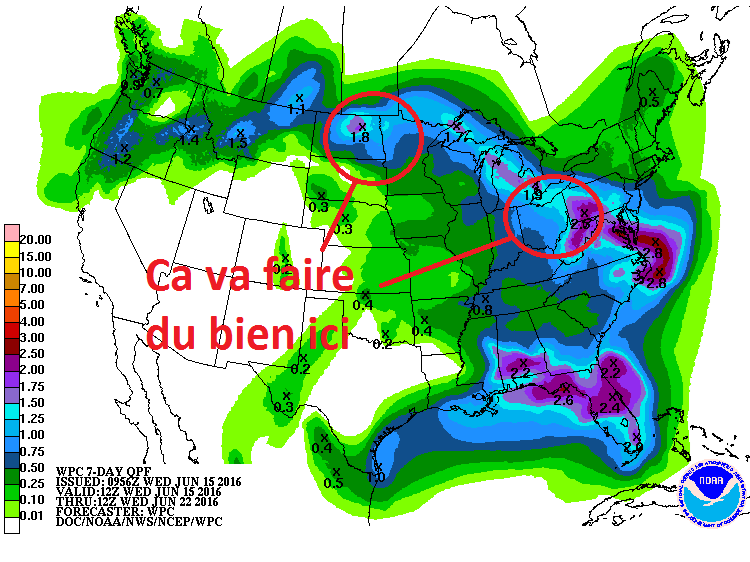 Précipitations prévues du 15 au 22 juin : les endroits qui ont un manque d’eau vont en recevoir.