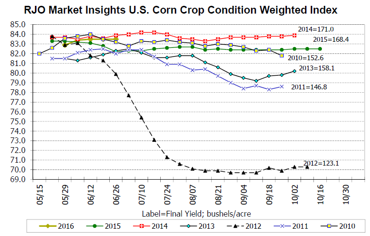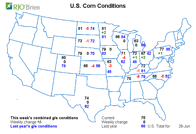 · Maïs : en bonne condition 75% good/excellent, 75% semaine passée et 71% en 2015