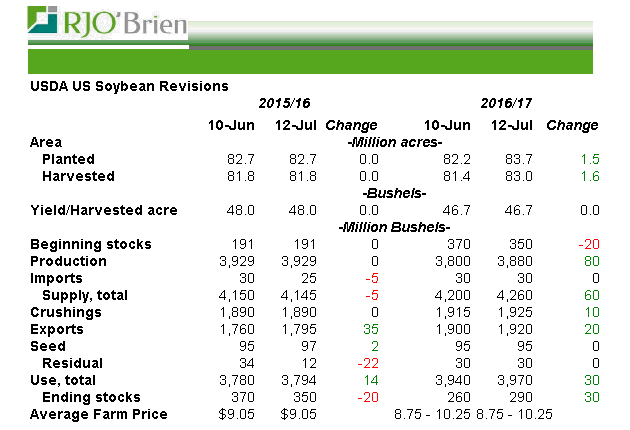 Rien à dire coté production, on utilise les surfaces qu’on connait avec le même rendement à 46.7 bu à l’acre. On laisse les révisions du rendement pour le mois d’aout comme c’est historiquement le cas.