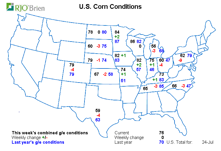 o Maïs : 76% bon/excellent, inchangé sur la semaine versus 70% l’an dernier