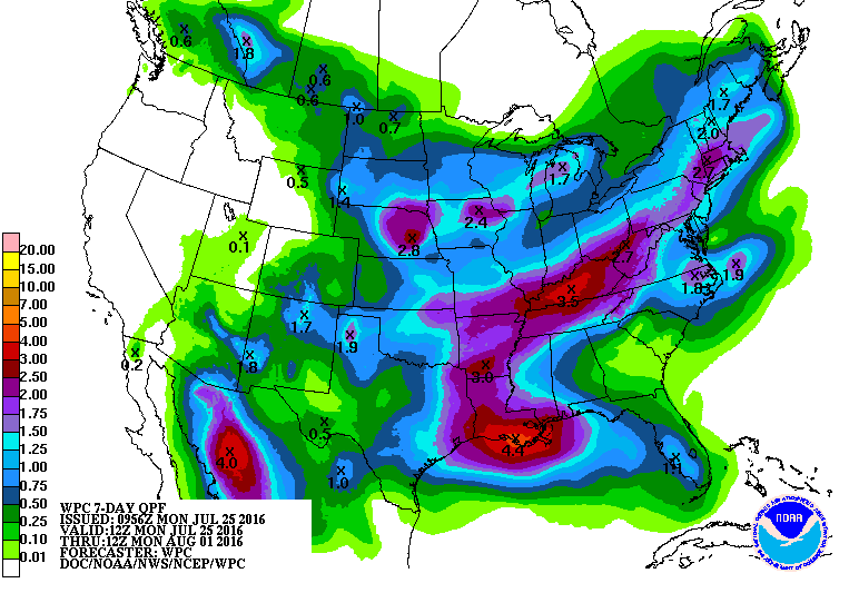 Précipitation prévue cette semaine, du 25 juillet au 01 aout 2016
