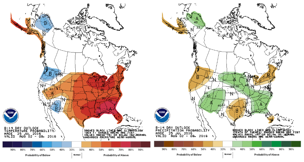 Carte météo : prévision long terme 8-14 jours (du 2 au 8 aout)