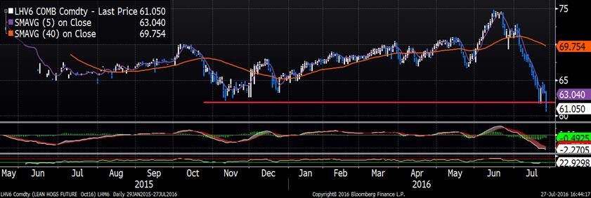 · Le prix du porc s’effondre, les livraisons d’octobre 2016 sont au plus bas prix depuis 2009 pour cette échéance