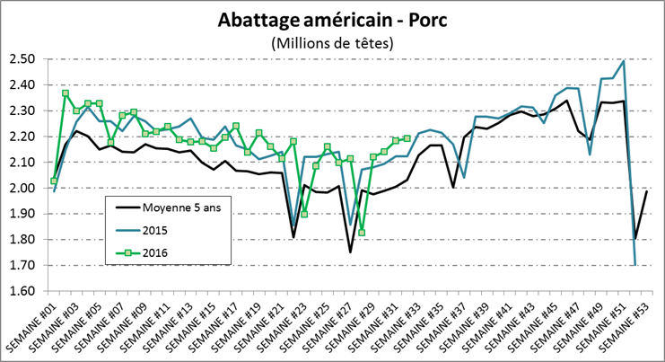 Graphique 2 – Abattages hebdomadaires de porc aux É.-U.