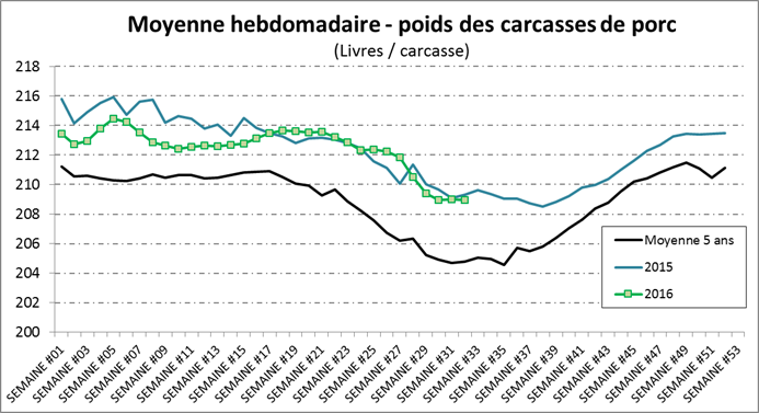 Graphique 3 – Poids moyen des carcasses de porc aux É.-U.