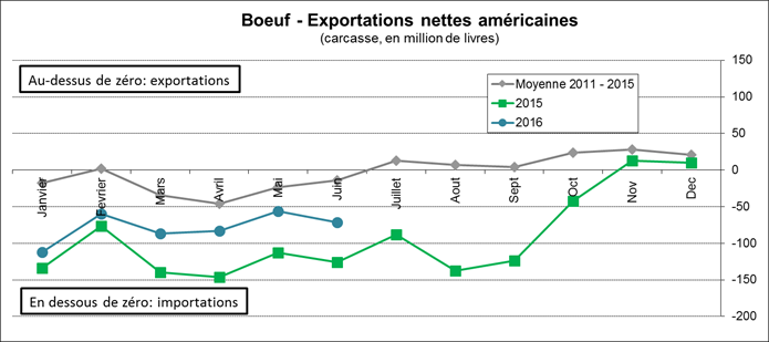 · En juin, les importations américaines de bœufs ont chuté de moitié versus juin 2015