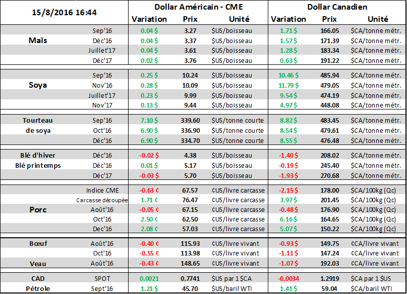· Malgré une production américaine record, les prix des grains terminent en force