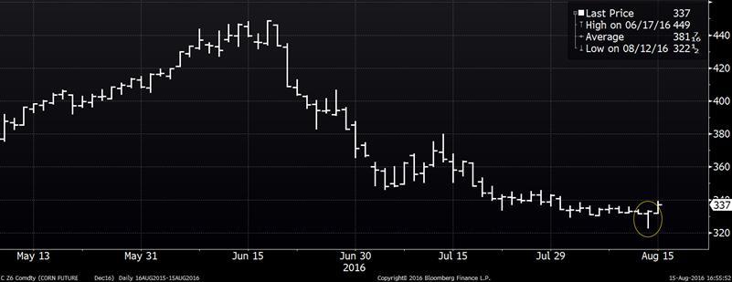 Graphique 1 – Prix du maïs de décembre 2016