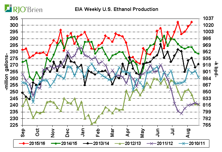 · Très forte production d’éthanol à 1.029 milliard de barils par jour