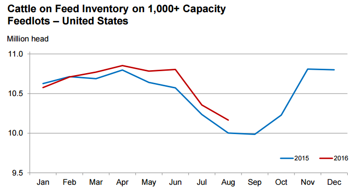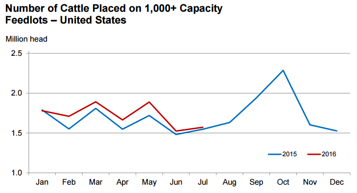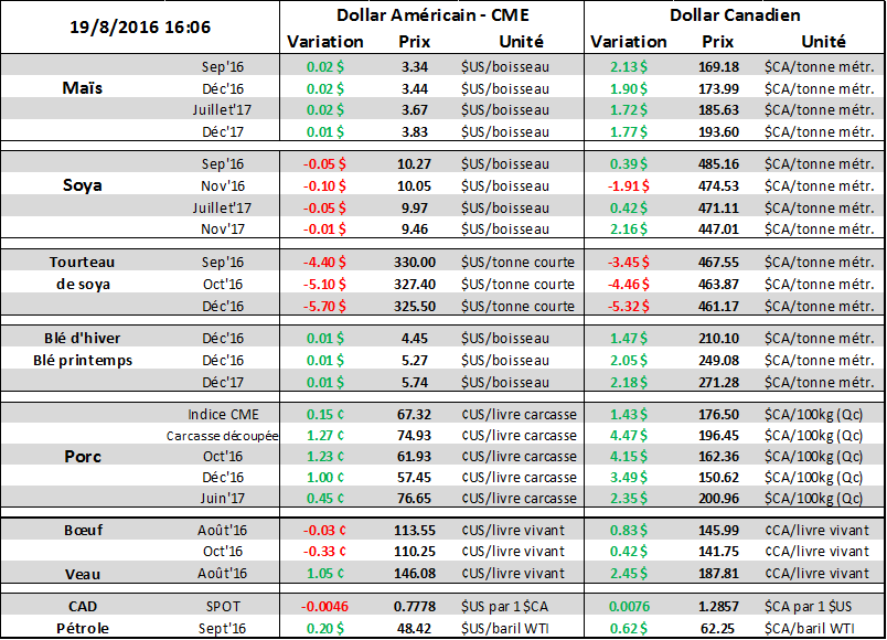 On Feed : neutre pour les bœuf en parc d’engraissement avec une hausse de 1.6% par rapport avec l’an passé en ligne avec les estimés
