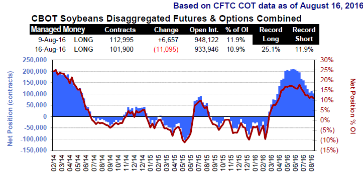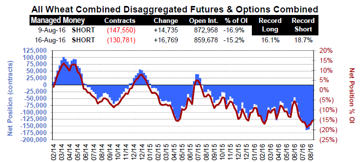 Position spéculative via CFTC Commitment of Traders en date du 16 aout (après le rapport USDA)