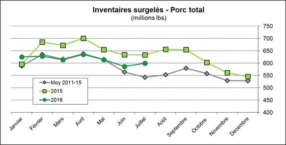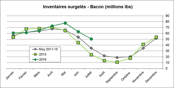 · Inventaires surgelés de porc à 600 millions de lbs, beaucoup de bacon