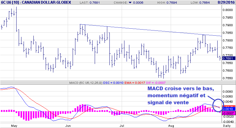 · Dollar canadien : Indicateur technique MACD pointe vers une faiblesse versus USD