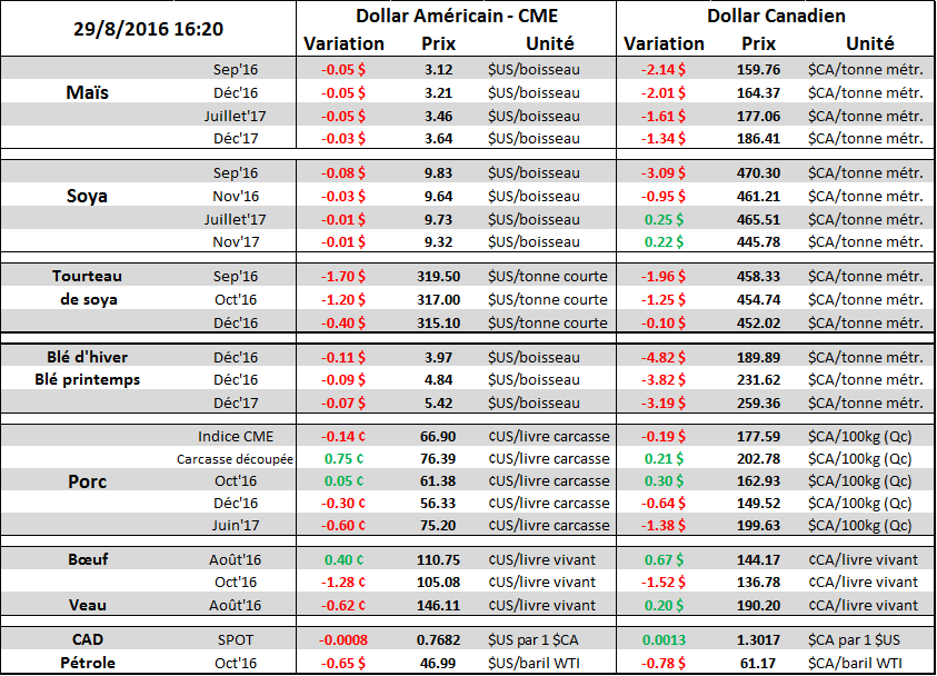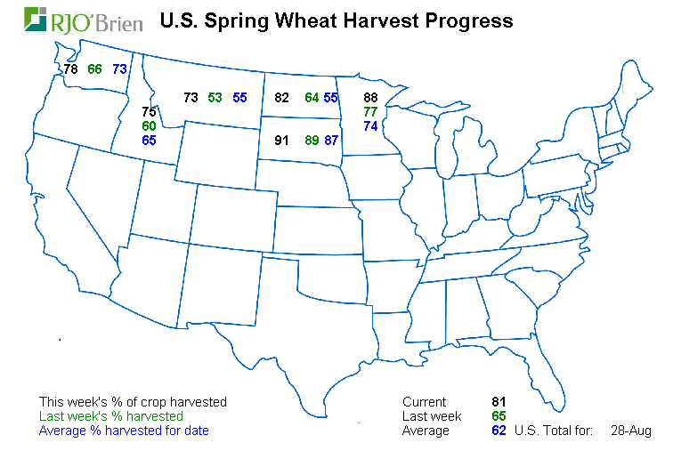 · Blé de printemps : Récolte rendu à 81% fini, la pression est évidente sur CBOT.