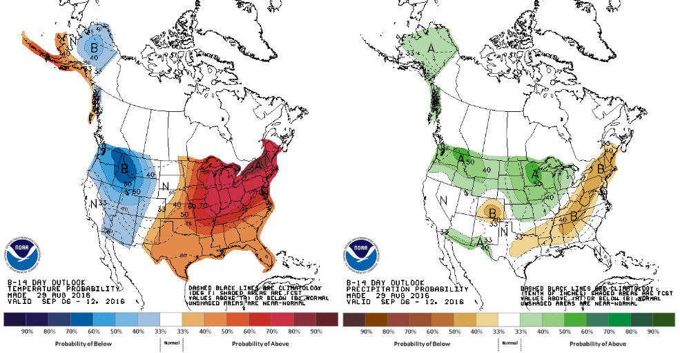 Météo : les forecasts sont cléments pour finir la saison ; on annonce des températures au-dessus des moyennes avec des précipitations jusqu’au 12 septembre.