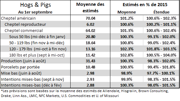 · Estimés Hogs & Pigs: 1.2% plus de porc qu’au 1er septembre 2015