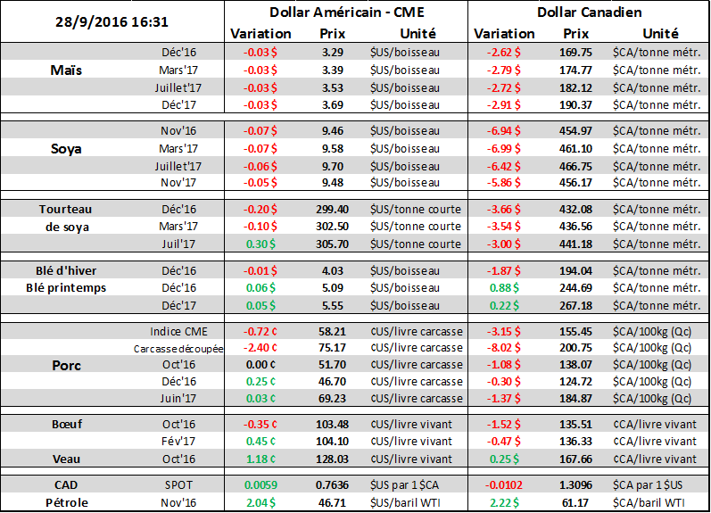 Pétrole et CAD – 28 septembre