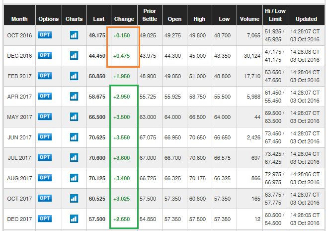 Lean Hog : avec la sortie du rapport Hogs and Pigs négatif pour les prix, nous attendions la réaction du marché. Évidemment le rapport était considéré négatif par rapport aux estimés qui habituellement représente bien le pouls du marché. La production est très forte et on peut corroborer et valider avec plusieurs facteurs : les chiffres d’abattage de près de 2.5 millions de porcs à chaque semaine, la pression sur le prix cash, le rapport Hogs and Pigs de vendredi et aussi avec le stocks de grain (maïs) qui a baissé significativement dû à la consommation pour l'élevage. Donc tout converge vers une très forte production pour l'automne et une partie de l'hiver d'ou la variation de prix très faible sur octobre (+0.15) et décembre (+0.475). Par contre, les participants du marché font l’hypothèse que les prix vont rebondir dès le printemps prochain avec une variation spectaculaire de 3.50 cents! À mon avis certains facteurs explique ceci :