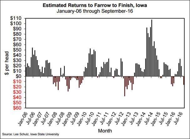 · Aux É-.U., la profitabilité de l’élevage de porc à chuter à -18 $US/tête en septembre… quel sera l’impact sur la production de 2017?