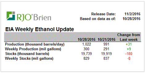 · Production hebdo d’éthanol de 1.022 million de barils par jour, près des volumes record de cet été