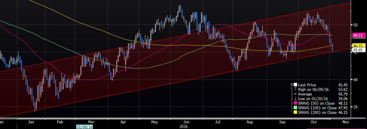 Quoiqu’il en soit, c’est donc une baisse de plus de 10% depuis le sommet du 19 octobre dernier dans le pétrole et un niveau important :
