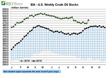 Pendant ce temps, le prix du pétrole a continué de reculer aujourd’hui pour toucher 44.96 $US/baril avant de se stabiliser un peu au-dessus des 45$. La raison principale du recul a été une hausse très importante des stocks aux États-Unis. Avec une hausse de 14.4 Millions de barils c’est un record historique et cela a de quoi inquiéter les marchés. Toutefois, nous mettrons plusieurs bémols à ce chiffre : Tout d’abord, les importations ont bondi au plus hauts depuis 20 ans. Mais ceci est dû à plusieurs évènements qui se sont coïncidés. (Ouragan Matthew, interruption pipeline Canadiens et la fin de la maintenance de plusieurs raffineries). Ensuite, la firme API avait indiqué une hausse de 4.5M la semaine dernière mais nous n’avions rien retrouve dans les data officielles. Hier leur publication montrait une hausse de plus de 9M. En ajoutant ces deux chiffres nous arrivons proche du chiffre officiel, se serait donc juste un rattrapage. De plus, ce serait le rattrapage des barils « disparus ». En effet depuis plusieurs semaines nous étions surpris de la baisse des stocks alors que normalement nous avons une hausse à cette saison. Comme vous pouvez le voir sur le graphique ci-dessous, la hausse d’aujourd’hui « rattrape » les 2 semaines précédentes