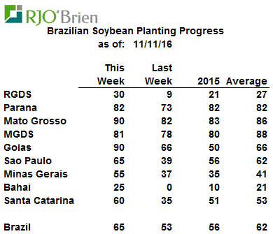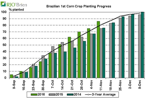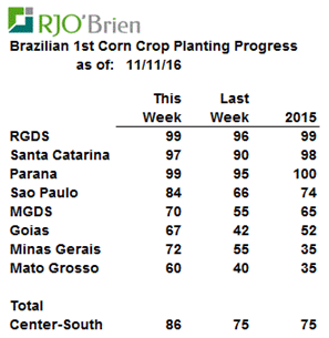 · Ensemencement maïs/soya au Brésil : très en avance
