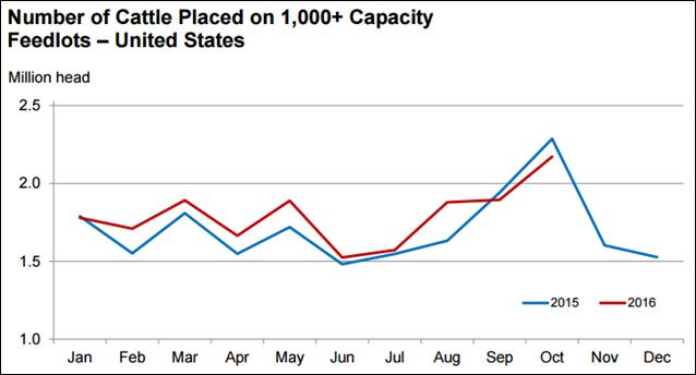 Source: USDA – Cattle on Feed (Novembre 2016)