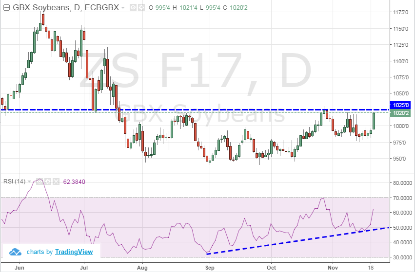 Fève soja : journée très positive à Chicago sans qu’il y ait de nouvelles éclatantes. On parle encore de la demande pour les huiles végétales et aussi le programme d’export américain qui va très bien. Graphiquement je note une divergence bullish sur le RSI mais à 62.38 il ne reste pas beaucoup de place avant de tomber en mode sur-achat. La résistance à 10.25 demeure valide et risque d’être difficile à traverser. D’ailleurs la structure du marché à terme n’indique aucune surenchère pour l’approvisionnement spot avec l’écart janvier/mars bien ancrée avec un carry de 8.50 cents très confortable.