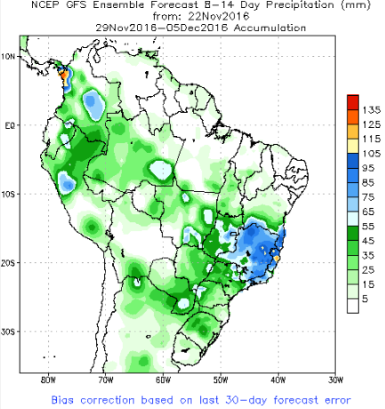 · Météo en Amérique du Sud: clémente au Brésil et un peu sèche en Argentine. Des prévisions pour cet hiver inquiètent le marché