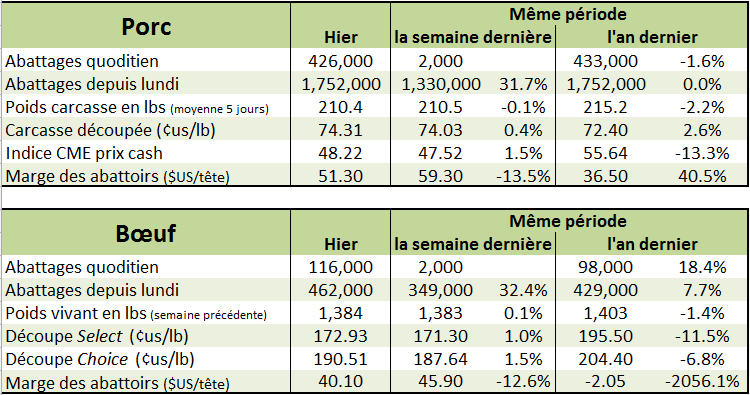 **Faire attention aux données d’abattage alors que la semaine dernière il y avait la Thanksgiving**