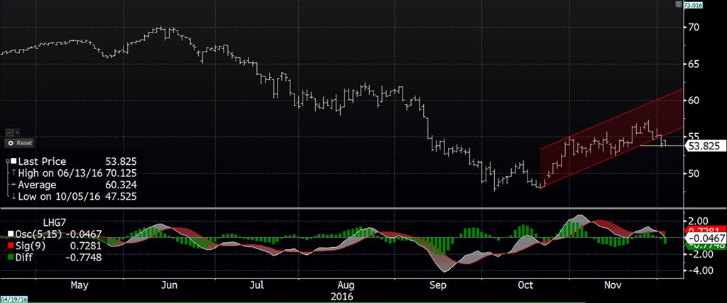 En ce qui concerne le marché du porc, des baisses ont été enregistrées sur la majorité des CàT. Décembre a terminé la journée à 50.225¢/lb, en baisse de 0.80¢/lb et février a terminé à 54.075¢/lb en baisse de 1.15¢/lb. Le CàT de février a tout juste passé sous la moyenne des 18 derniers jours et son niveau le plus bas des deux dernières semaines. Le CàT d’avril a clôturé à 60.45¢/lb en trouvant support sur la moyenne 100 jours qui se trouve à 59.884¢/lb.