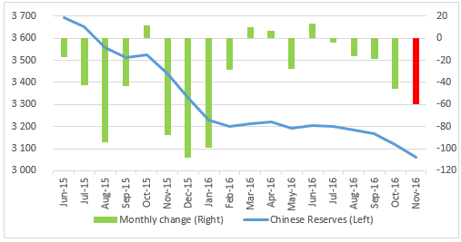 La Chine publiera ce soir ses réserves de change. Les attentes sont pour une cinquième baisse mensuelle de suite et la plus importante depuis le mois de Janvier dernier. La dépréciation du Yuan s’est poursuivie au cours des dernières semaines ce qui a prolongé les sorties de capitaux. En aout 2015, la Chine avait levé le peg qu’elle a avec le Dollar américain et depuis ses réserves on fondus de 14% à 3.12 Milliards de dollars.