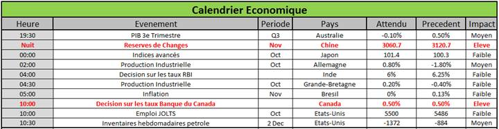 De plus si nous regardions les chiffres publiés par Stat Can aujourd’hui, se sont encore les exportations de produits énergétiques qui aident les exportations avec une hausse de 5.5% soit la huitième hausse consécutive. Si l’on retire cette catégorie, les exportations ont fléchies de 0.3% en Octobre avec des baisses de 3.2% des biens de consommations.