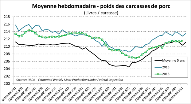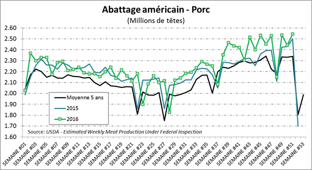· Production hebdo de porc record à 538 millions de lbs