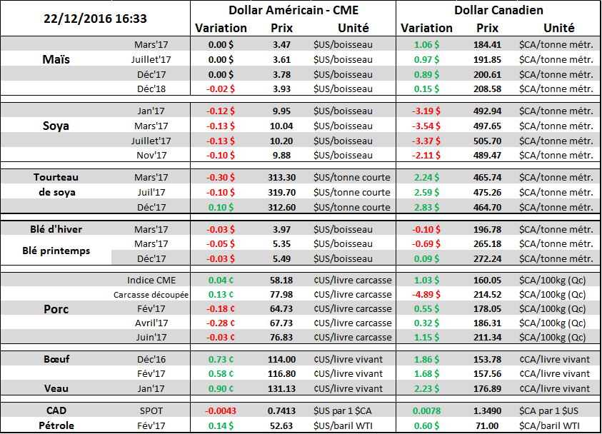 Journée qui commençait bien dans les grains avec le recul du dollar canadien et des solides stats d’exportation. Mais le CBOT n’a pu progresser et le marché a clôturé en baisse.