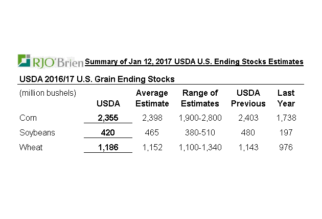 · Bonne demande, stock de fin un peu plus faible maïs/soja et un peu plus dans le blé